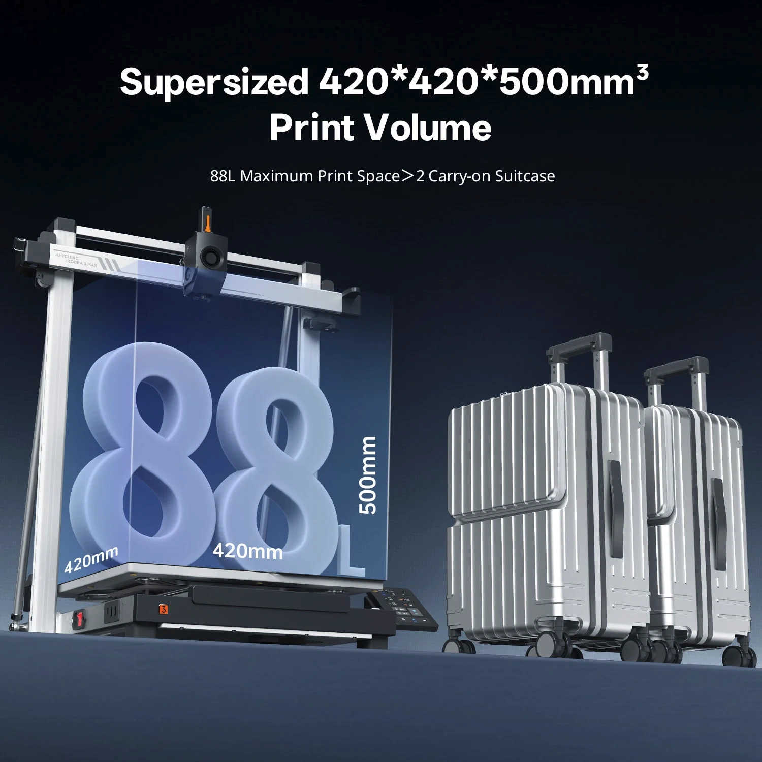 - Build Volume: 420 × 420 × 500 mm